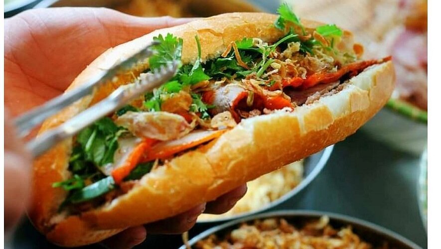 The joyful experience of tasting Banh Mi of the Southern part is quite different. Due to the favorable natural conditions, the Southern banh mi is stuffed with tons of veggies such as slides of fresh cucumber, white radish, carrot, pickled carrots, onion, cilantro, and chili.